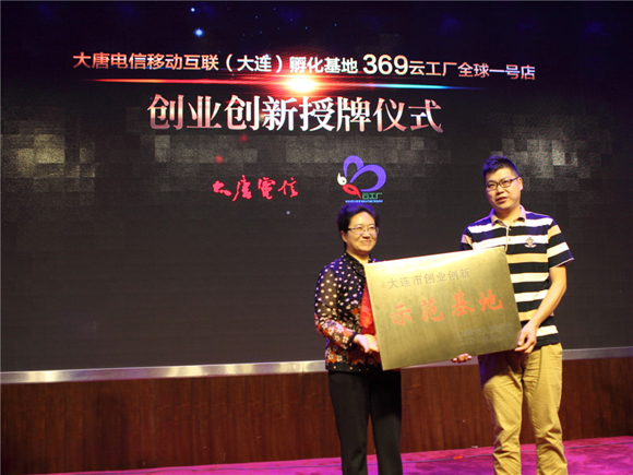 9月8日上午,大唐電信移動互聯(大連)孵化基地旗下369云工廠1號店舉行“大連市創業創新示范基地”授牌儀式。大連市常務副市長曹愛華、共青團大連市委書記趙宏、中共中山區委書記郝明、中山區區長張淑華,大唐電信總裁王鵬飛、大唐電信副總裁楊勇,以及部分青年創客代表共同出席了授牌儀式并參觀了369云工廠。