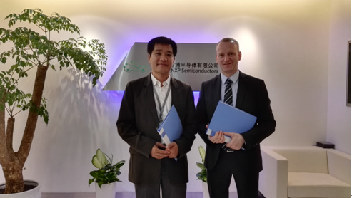 大唐恩智浦CEO張鵬崗(左)和TÜV SÜD大中華區汽車服務部總監Dirk Hinzpeter(右)