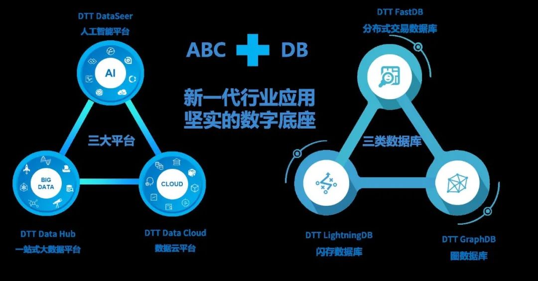該產品體系可概括為“ABC+DB”,“A”指“AI”即人工智能平臺,“B”指“Big Data”即一站式大數據平臺,“C”指“Cloud”即數據云平臺,而“DB”則是包括分布式交易數據庫、分布式閃存數據庫和圖數據庫在內的三類數據庫,它們共同構成了“新一代云化大數據中心的數字底座”,為各類客戶快速搭建其行業應用提供有力支撐。