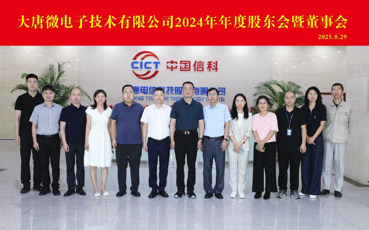 2025年8月29日下午,大唐微電子技術有限公司(以下簡稱“大唐微電子”)在北京市海淀區永嘉北路6號419會議室組織召開2025年第2次股東會、第5次董事會,選舉新一屆董事會并召開2024年年度股東會暨董事會。大唐微電子董事長陳中林主持會議,大唐股份黨委書記、董事長劉欣,公安部第一研究所、國新建源股權投資基金(成都)合伙企業(有限合伙)股東代表、公司董事和相關領導等出席會議。