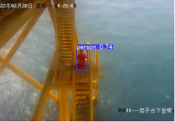 在海上升壓站無人值守期間,設置布防狀態。當有人攀爬海上升壓站或風機基礎平臺,AI人員檢測設備檢測到攝像機圖像中到有人員出現時,立即觸發本地消防廣播進行驅離,對擅自登站人員起到震懾作用。同時陸地集控中心聲光告警,視頻取證。